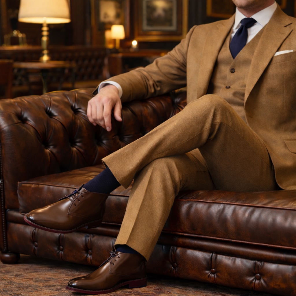 Bred from the classic British Chukka silhouette once trusted by military officers and gentlemen of impeccable taste, The Britannica brings that rich lineage to your everyday wardrobe — minus the pith helmet and top-hat awkwardness. Designed with a squarer toe box and a last that welcomes your foot like a trusted debating partner, these boots encourage you to step out with confidence and a hint of playful authority.