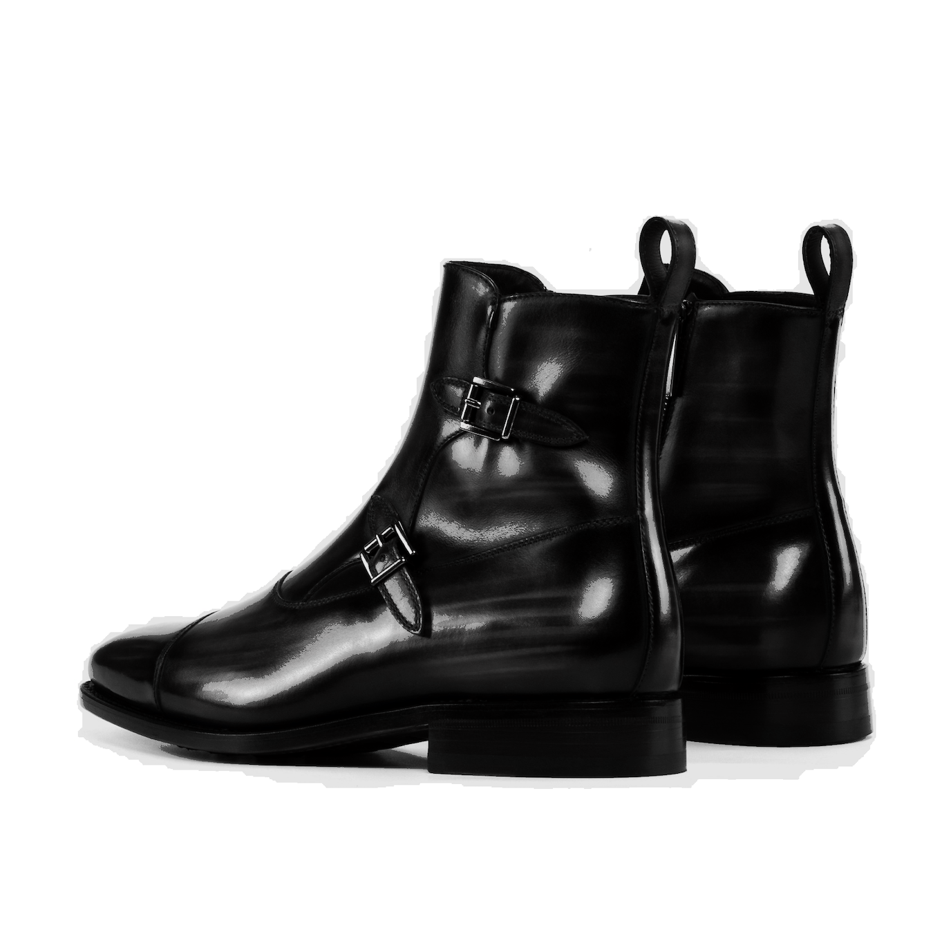 The double monk uses beautiful Italian leather, soft texture, fine pores, can keep the foot long time fresh, natural texture, luster transparent, showing the elegant style of a gentleman. Shown here is black but also available in Burnished Tan.