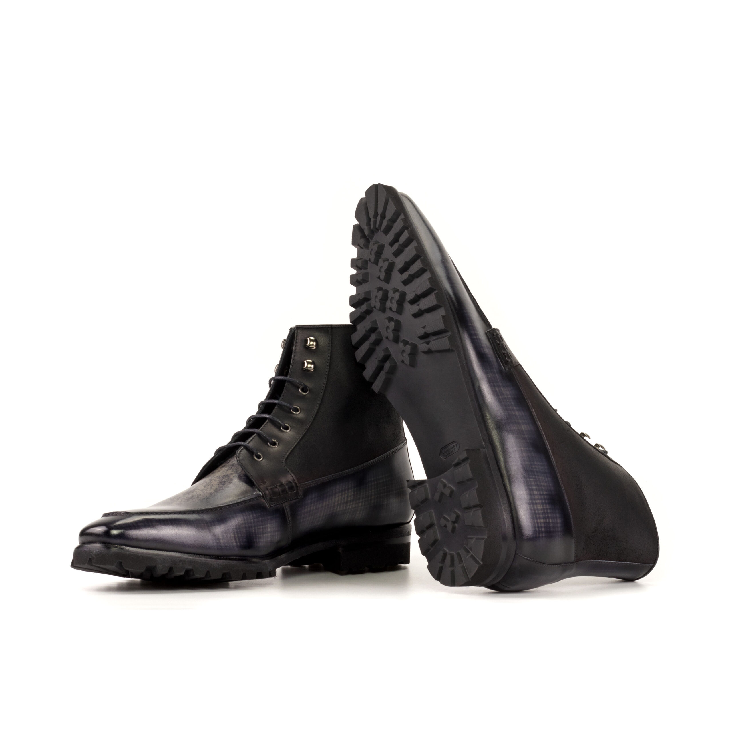 Materials: Black box calf + black painted calf + grey patina